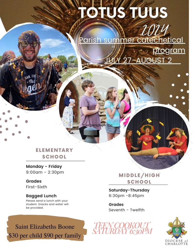 St. Elizabeth’s: *Calling all TEENS* Totus Tuus Summer Evening Program and Saturday (7/27) Cookout REGISTER HERE!